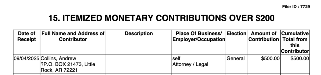 Sarah Capp donation report. Andrew Collins is a Democrat state representative and current leader of Democrats in the Arkansas House.