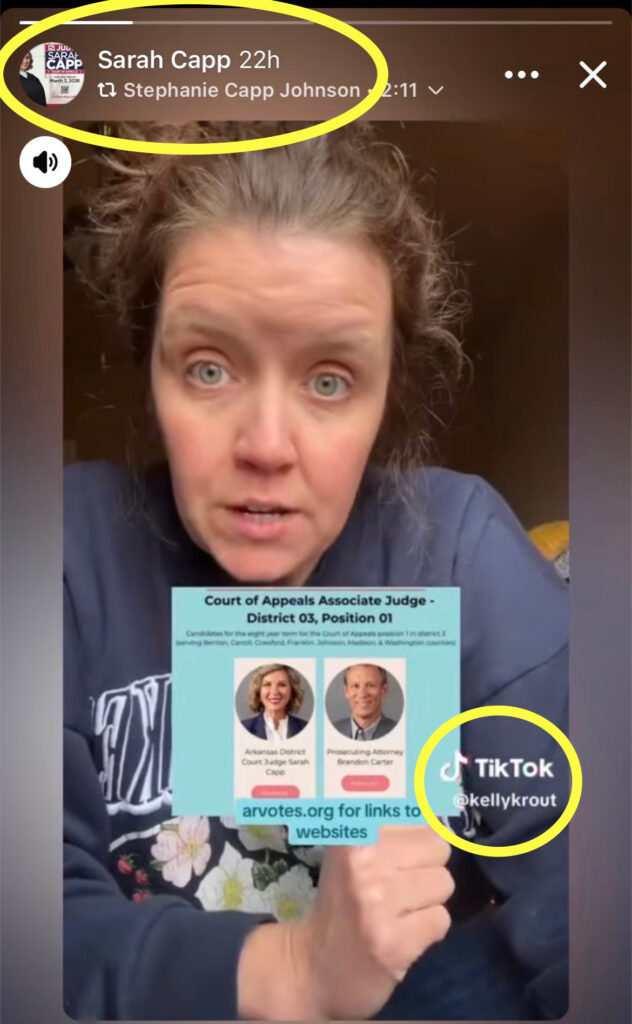 Sarah Capp promoting the endorsement of failed Democrat State Rep and Lieutenant Governor candidate Kelly Krout.
